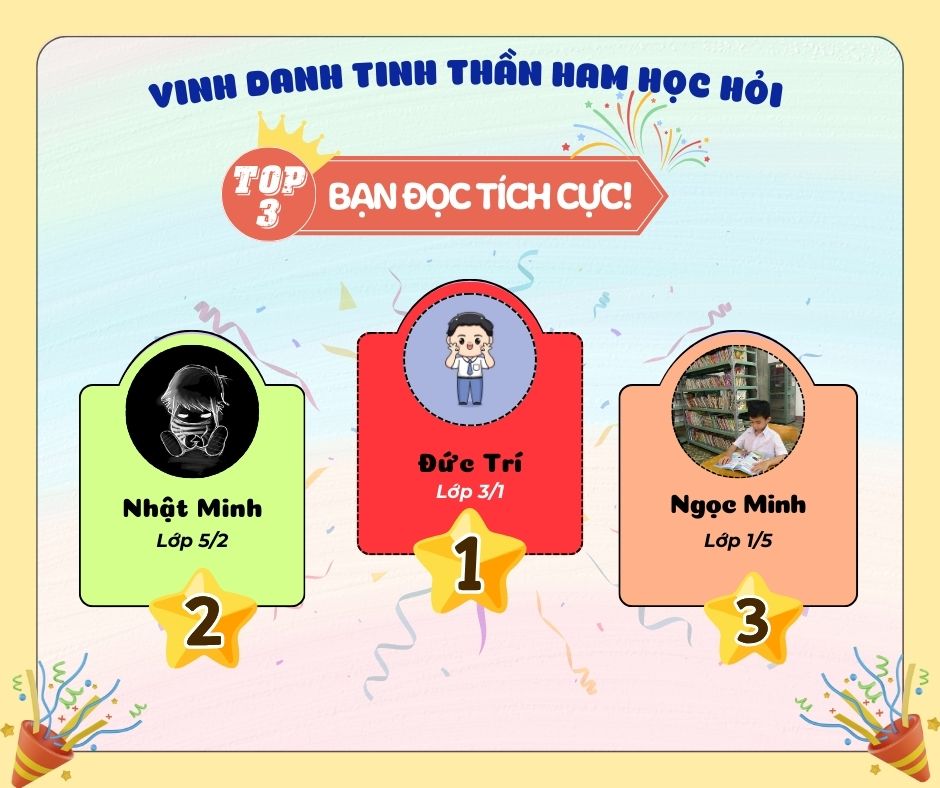 Trong tháng 4 vừa qua, ba bạn học sinh có thành tích nổi bật khi tích cực đọc và học tập qua Thư viện số là:
